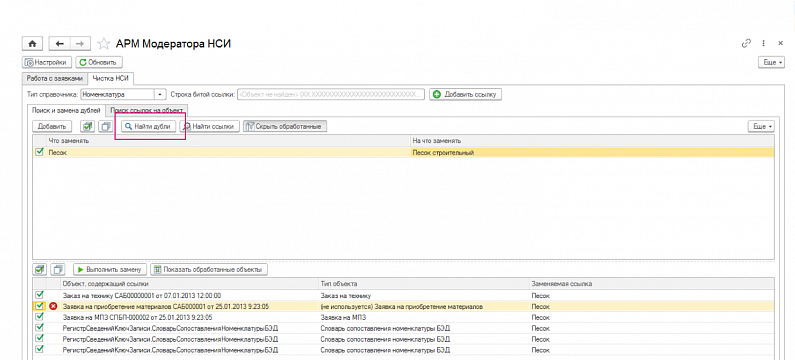• Выявление и удаление элементов справочников по всей базе в автоматическом режиме.